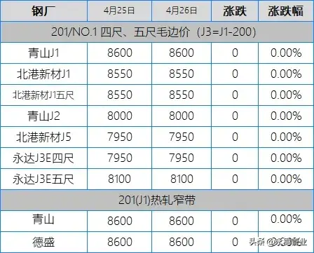 午后,304吆喝轉弱后,201開始跟隨各種搞氛圍,多是高位報價下調20-30限量接單,而不久就接滿回歸調回高位,各個都在限量,各種好似都成交很好,但是實際接了多少可能只有自己知道。今日現貨市場含稅價格:J1: 宏旺、北港、誠德8850-9000基;J2、J5: 8250-8400基。