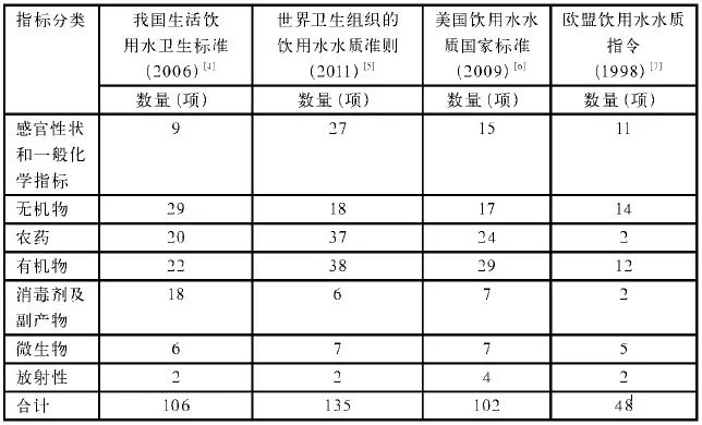 國內外飲用水水質標準的比較