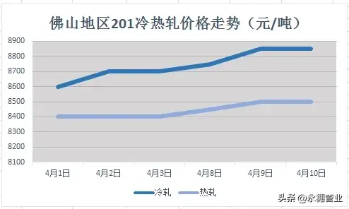 201對比起304,就相對穩定,冷軋的漲幅比熱軋的漲大,幅度在:50。